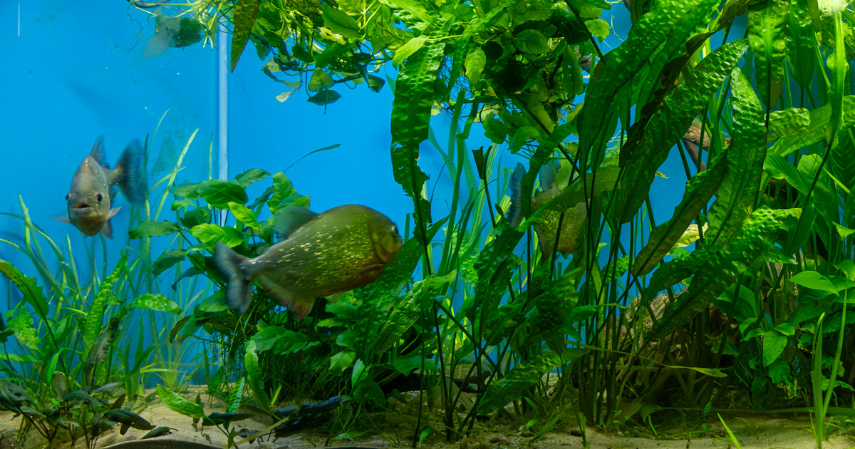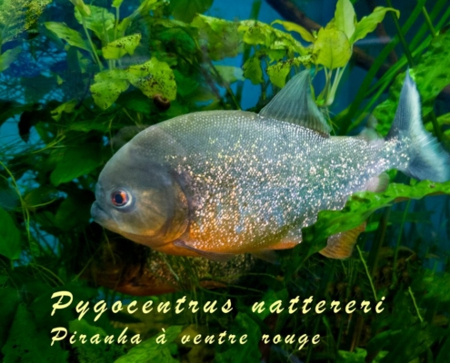 Voici notre bac sud américain peuplé de cinq Piranhas rouges (Pygocentrus nattereri).