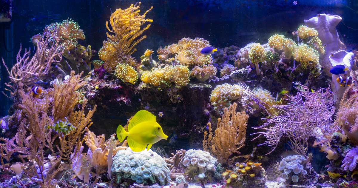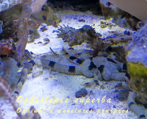 Voici notre bac récifal peuplé entre autres d’un flavescens, demoiselles, clowns, d’invertébrés et également de coraux durs et de coraux mous.